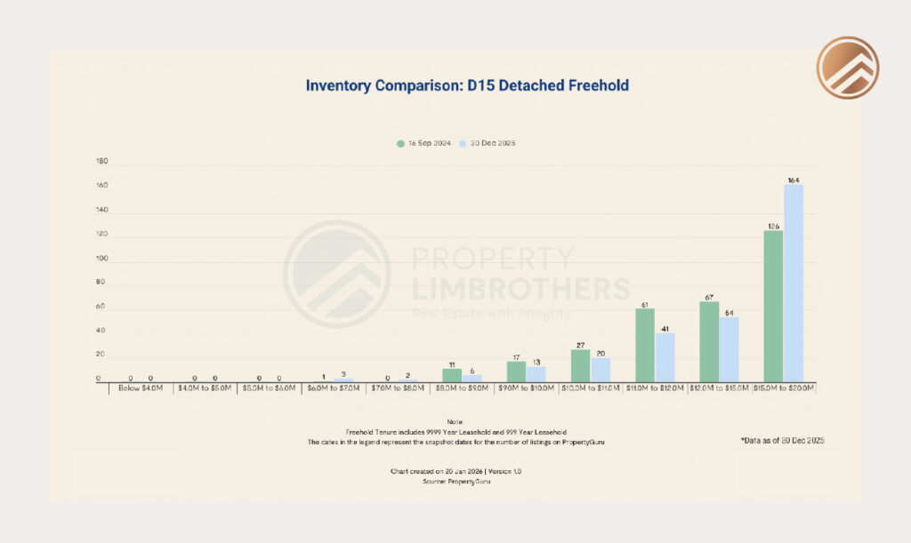 Rather than indicating panic or distress selling, the upward shift in asking prices across many listings reflects a broader recalibration of expectations. Sellers are adjusting to a higher market baseline following the significant appreciation experienced in the landed market over recent years.