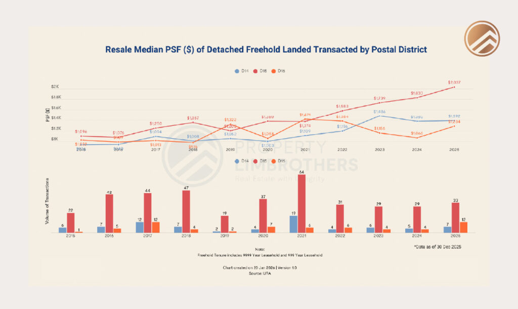 This week’s Landed VIP Club article explores how detached homes in District 15 have been performing, why the price premium continues to hold against nearby districts such as D14 and D16, and what both buyers and sellers should understand about the market heading into 2026.